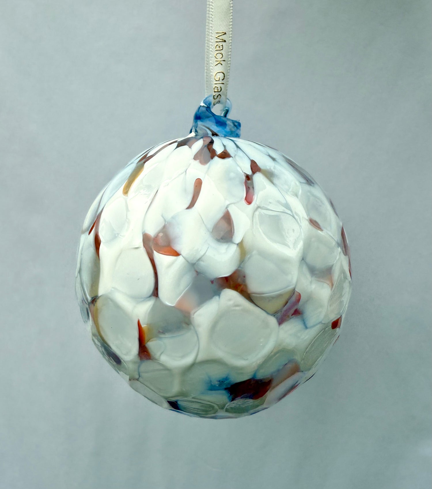 Blown glass ornament handmade at our studio in Delavan, Wisconsin.